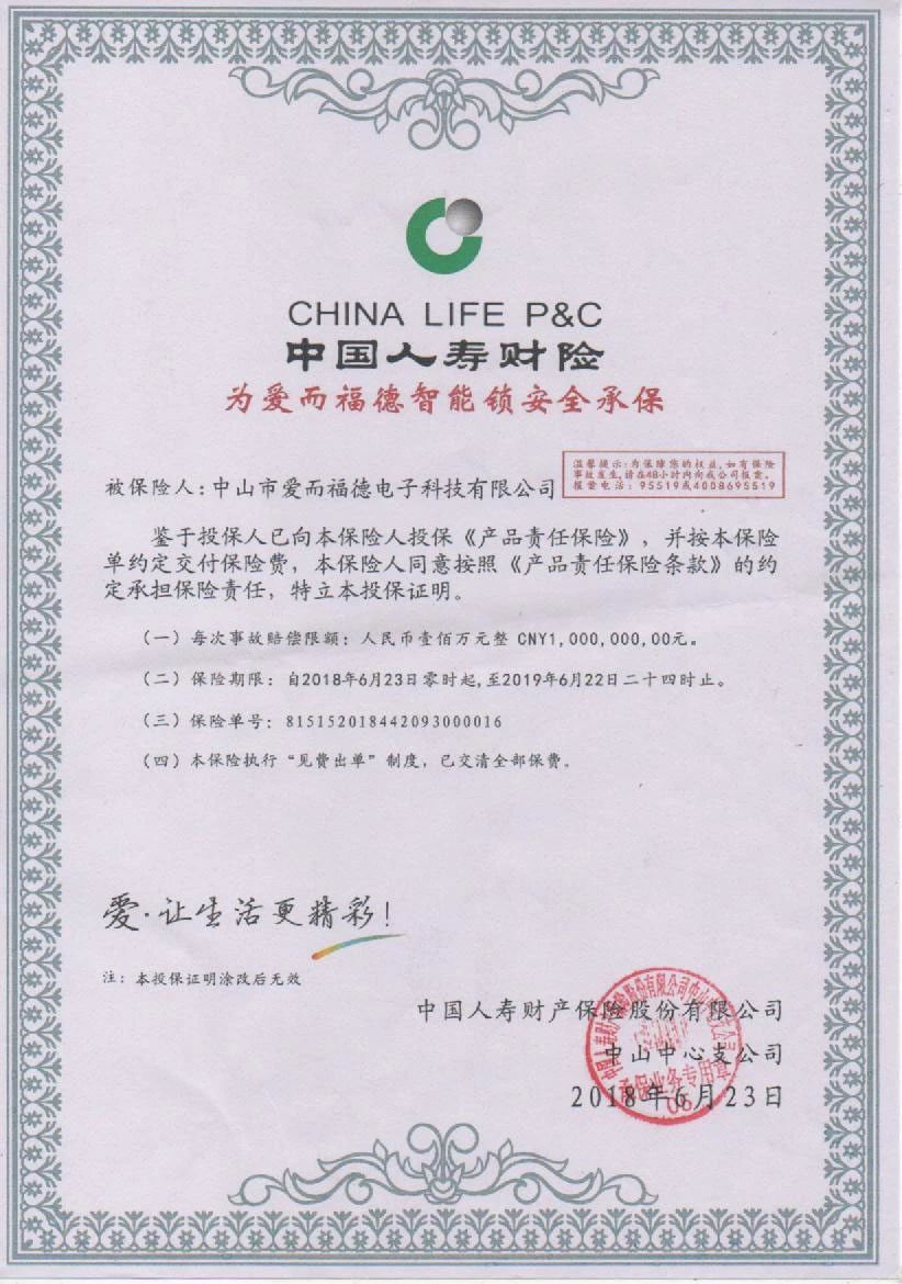 中國(guó)人壽為愛而福德智能鎖承保