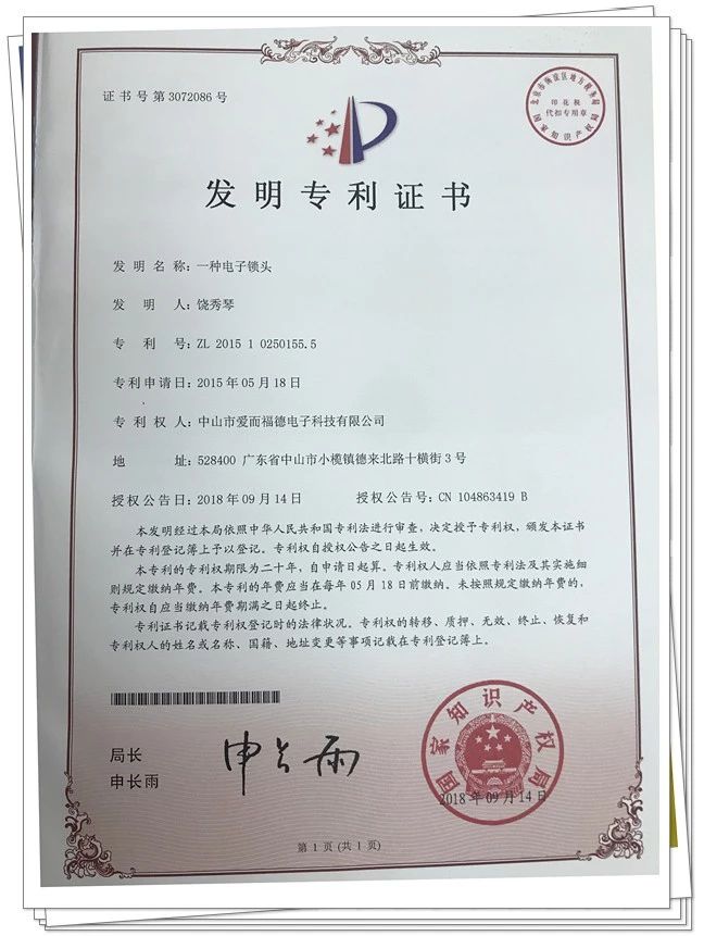 愛而福德第二個(gè)發(fā)明專利成功被通過(guò)